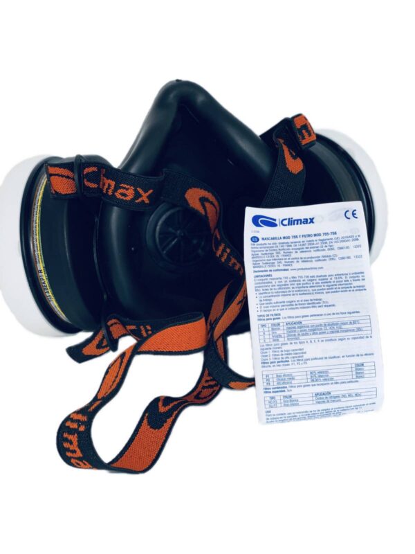 Półmaski wykonane z miękkiej gumy termoplastycznej. Filtry wielokrotnego użytku i wymienne. Dwa boczne filtry zapewniające mniejsze opory oddychania. Łatwa konserwacja. Pałąk i opaska na szyję zapewniają optymalne dopasowanie i dobrą stabilność. Kompatybilny z filtrami CLIMAX 755 i 756 do gazów, par, cząstek i kombinowanych.
